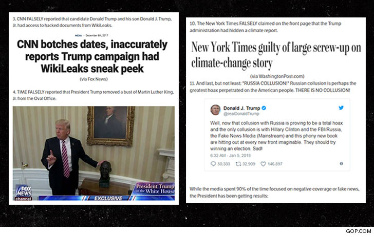 President Donald Trump came through on presenting "The Fakies" ... his 2017 Fake News Awards. He teased it up as "The Most Dishonest and Corrupt Media Awards of the Year" ... and here are the HUGE winners (losers?) in his words. No shocker, CNN took the most trophies.